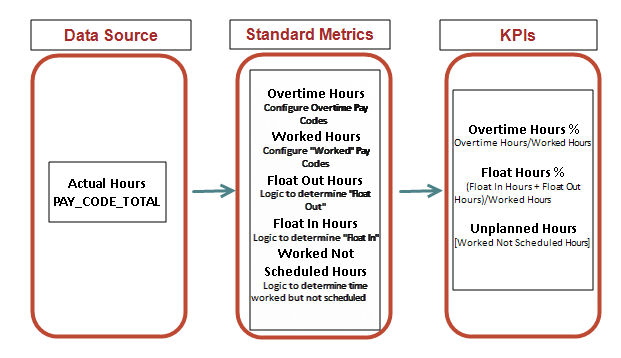 The standard metrics and KPIs are configurable in the sense that you define which pay codes count towards the defined metrics and KPIs.