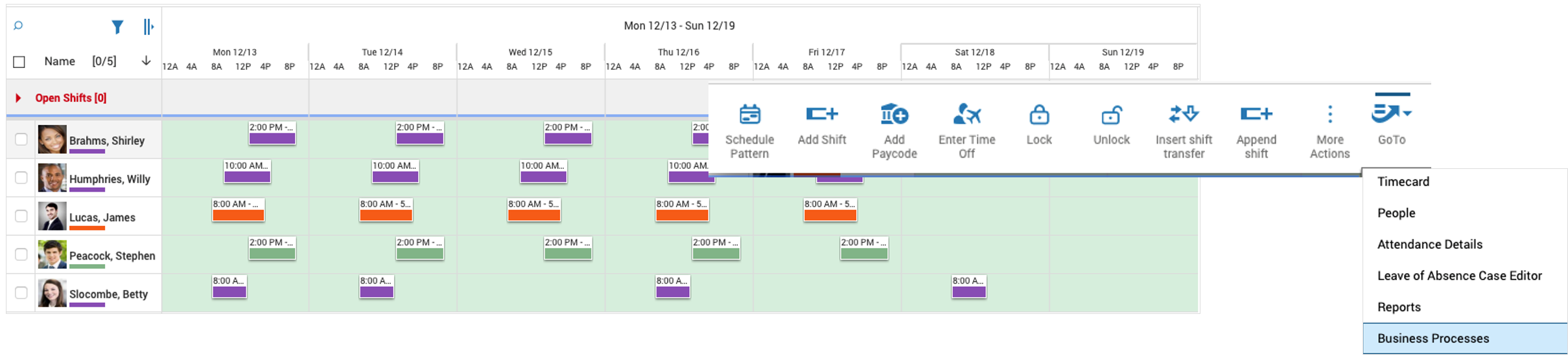 1. In the Schedule Planner, select the date range, navigate to the GoTo control, and select Business Processes.