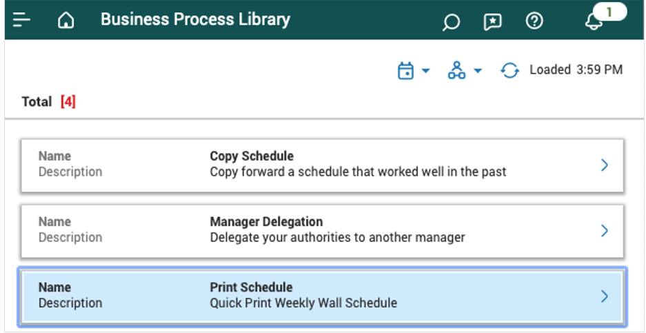 2. From the Business Process Library select Print Schedule.