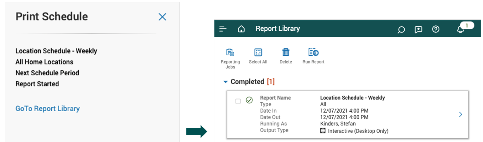 3. Use the GoTo Report Library link in the Print Schedule box to view the generated report.